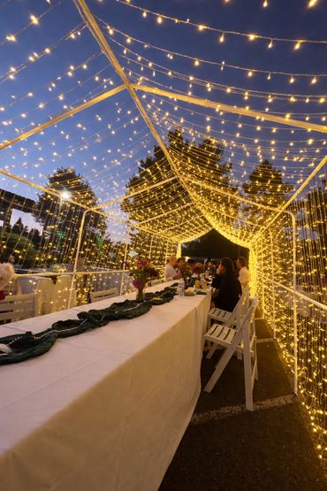 We specialize in custom lighting designs and a variety of lighting arrangements to make your event dazzle! Our event decor includes custom made designs with a full setup featuring lights, structures, and a power source (if needed). Serving the Oregon and Washington areas, we cater to events of all sizes—weddings, quinceañeras, graduation parties, family reunions, birthday celebrations, anniversaries, and any other party rentals you can dream up! Prices are based on per day rental, and shorter duration rentals are available!